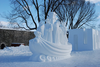 Magnifiques ces sculptures, d'une finesse !! ainsi que l'hôtel de glace ... Vous ramenez de très bons souvenirs de ce Carnaval à Québec, merci de nous les faire partager. Et comme vous êtes drôles tous, emmitouflés. On attendait ces photos de grand froid...